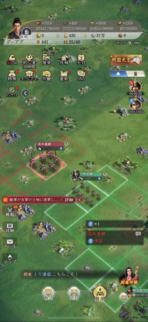 城外フィールドにフォーカスをあて、領地拡大に集中できる。